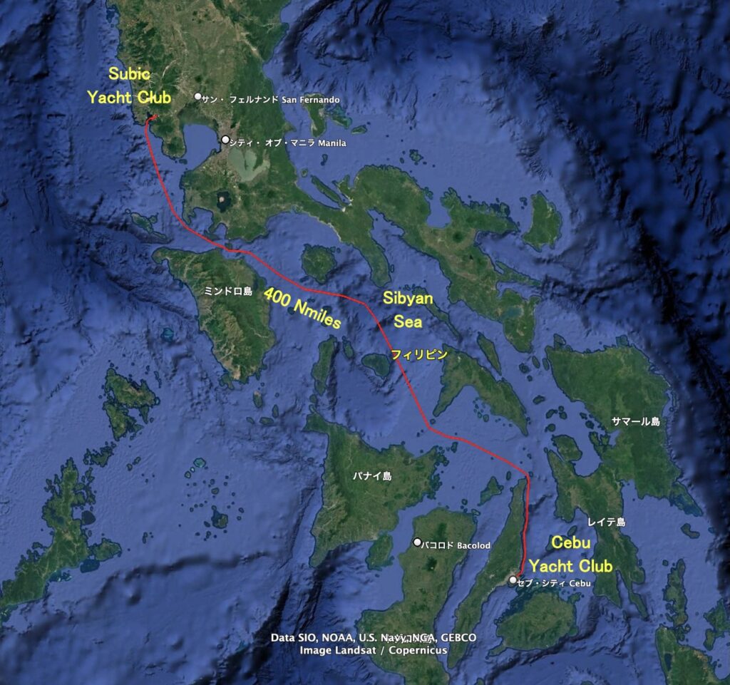 その後、セブ島に沿って北上、「鎮魂の海」シブヤン海を縦断して、マニラ湾口を右に見てスービックヨットクラブを目指す。