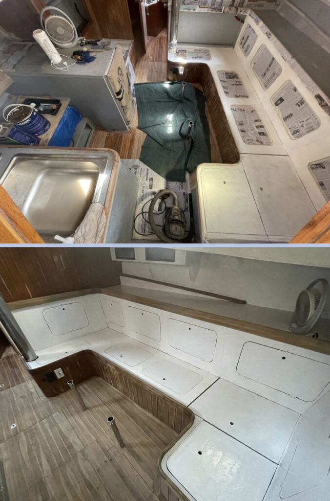 ギャレー部も見える所は基本的部白色トップコート位仕上げ。