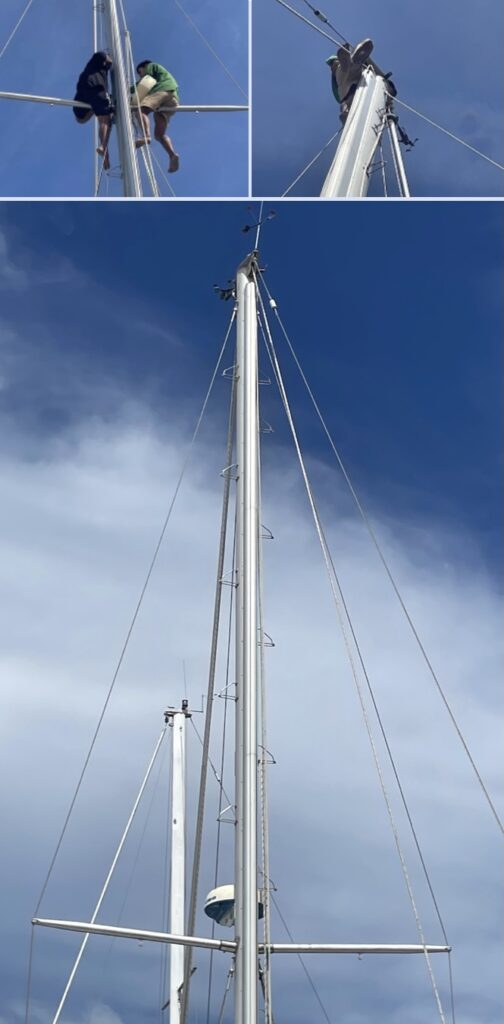 Navigation aids have been installed. A wind direction & strength sensor, a wind indicator at mast top and a Furuno radar dome at spreader level have been installed. Look like a offshore yacht!