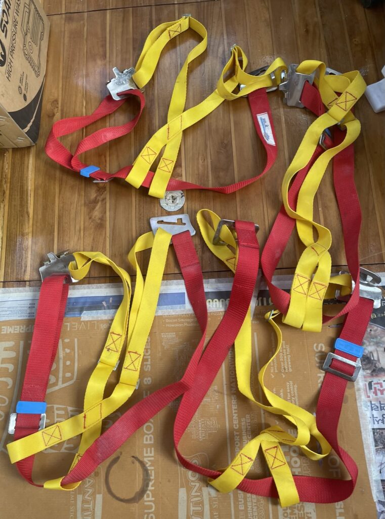 イタリア製のハーネス4つ。シップヤードのワーカーから購入、P500なり。