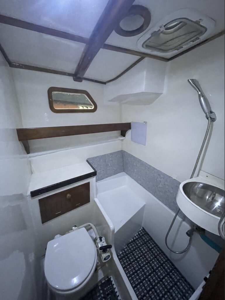 A long waiting carpenter finally showed up in the fifth and final week. The upper cabin seats and shelves will be made by him. The main cabin, sternhead, and chart table have been turned up by myself, and for an amateur’s work, it turned out pretty decent. The mechanic will continue to work on the engine and steering machinery even during my absence. Next schedule is mid-March, and finally long waiting sailing will be taken place.