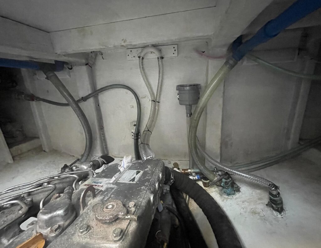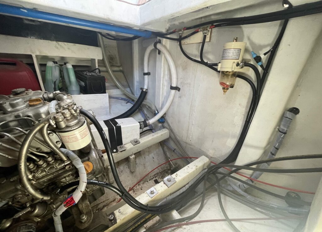 大きなエンジンルームの両舷に配置した250リットルの燃料タンクから不純物/水除去フィルターを経由して軽油がエンジンに供給される。