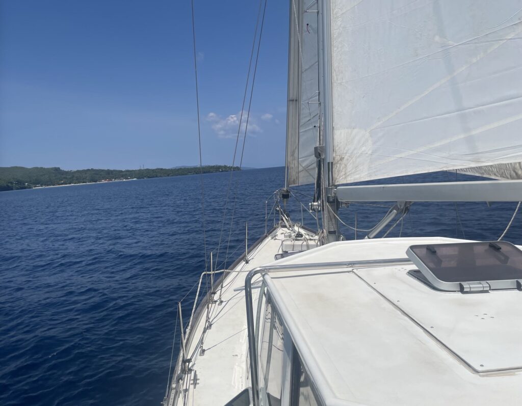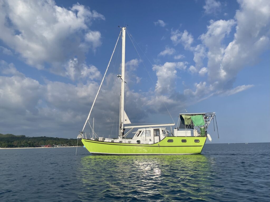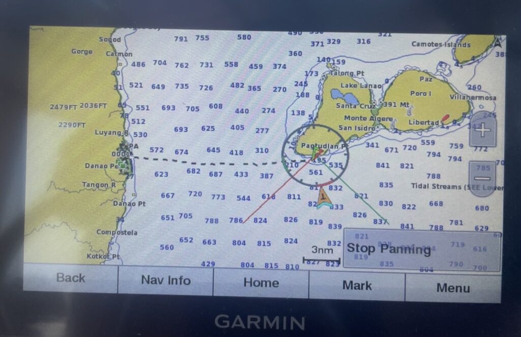 From April 15 to 16, 2026, we conducted the shakedown voyage and sea trial of Isana after repairs were completed. We departed just before 9 a.m. on the 15th, heading toward Camotes Island. The wind was from the northeast at 3–4 m/s; for the first three hours we proceeded under engine power, then as the wind picked up slightly to 5–6 m/s, we switched to sailing and made 4 knots. We arrived off Santiago Resort around 1:30 p.m. While checking the depth sounder, we approached to about 300 meters from shore and dropped anchor in 10 meters of water.