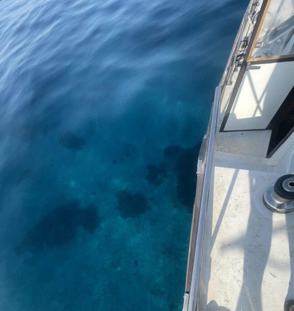 朝は潮位が上がり水深10m。船の上から海底の様子がよく見える。本当に綺麗な海。