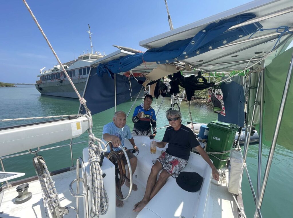 2026年4月15日〜16日にかけて、修理が完了した勇魚のシェイクダウン航海、シートライアルを行った。15日朝9時前にカモテス島に向かって航海を開始した。風は北東3〜4m/s、最初の3時間は機走、少し風が上がって5〜6m/sでセーリングに切り替えて4knで帆走。サンチャゴリゾート沖には午後1時半ごろにに到着。水深計を見ながら岸から約300mほどまで近づき、水深10mでアンカーを落とした。